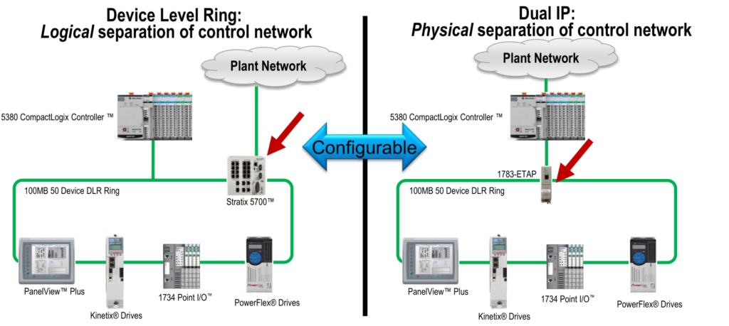 • Поддерживает кольцевую/линейную структуру сети или два разных IP-адреса